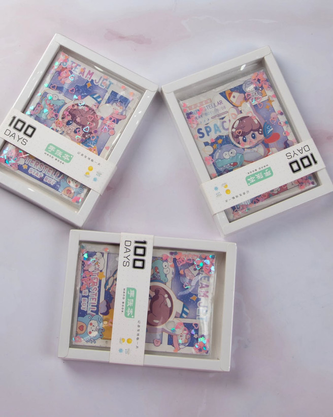دفتر وارداتی خوشگل و کیوت با ۱۰۰ برگ رنگی و حاشیه دار، قابلیت تعویض کاور و بسته بندی طلقی و بسیار شیک مناسب برای عیدی.