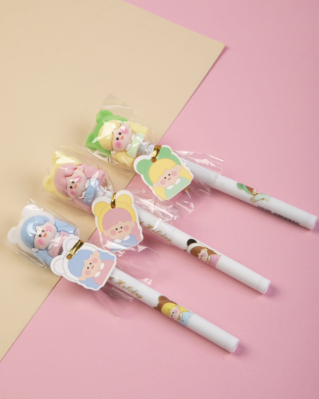 روان نویس دختر آبنباتی با کیفیت عالی. دارای ۳ رنگ عروسک (آبی، صورتی و سبز) و ضخامت نوک ۰/۵. رنگ جوهر مشکی.