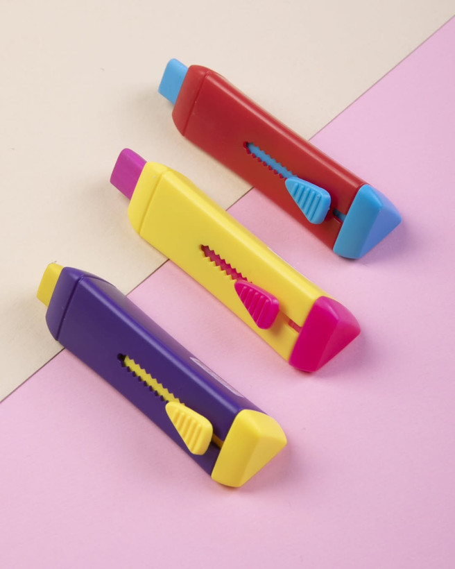 پاک کن کاتری Yplus مدل candy با داشتن فرم بدنه سه گوش که دست گرفتن آنرا راحت می کند و همچنین مناسب برای کارهای ظریف هست و قابلیت تنظیم اندازه پاک کن دارد.