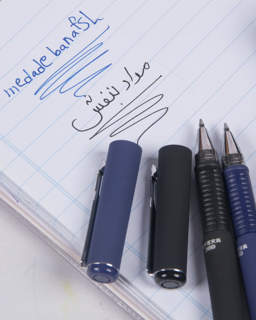 خودکار آبی و مشکی بدنه مخملی